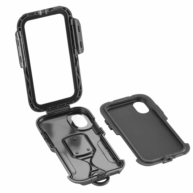 Il supporto impermeabile per iPhone X presenta una robustissima custodia esterna ed un adattatore interno in silicone antiurto ideali per proteggere lo smartphone durante i viaggi in moto.
