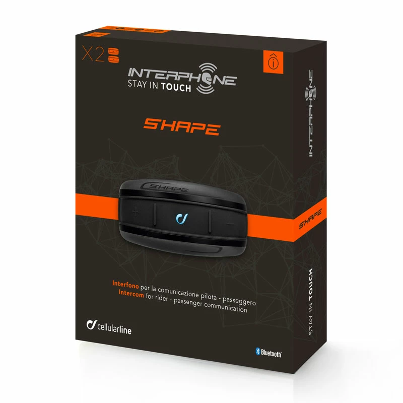 Interphone Shape rappresenta la combinazione perfetta fra design ed elevate prestazioni dell’interfono. Shape consente ai piloti di comunicare con i loro passeggeri senza interferire con lo stile del casco. Shape è compatibile con tutti i tipi di casco e consente di ricevere chiamate, di seguire le indicazioni del sistema di navigazione tramite la connessione Bluetooth® per raggiungere in tutta sicurezza qualsiasi destinazione. Con un’autonomia di oltre 12 ore, si potrà sempre contare sulla sua energia. Interphone Shape è facile da utilizzare ma completo di tutte le funzioni, perfetto in qualsiasi condizione climatica. Disponibile in nero con dettagli lucidi.